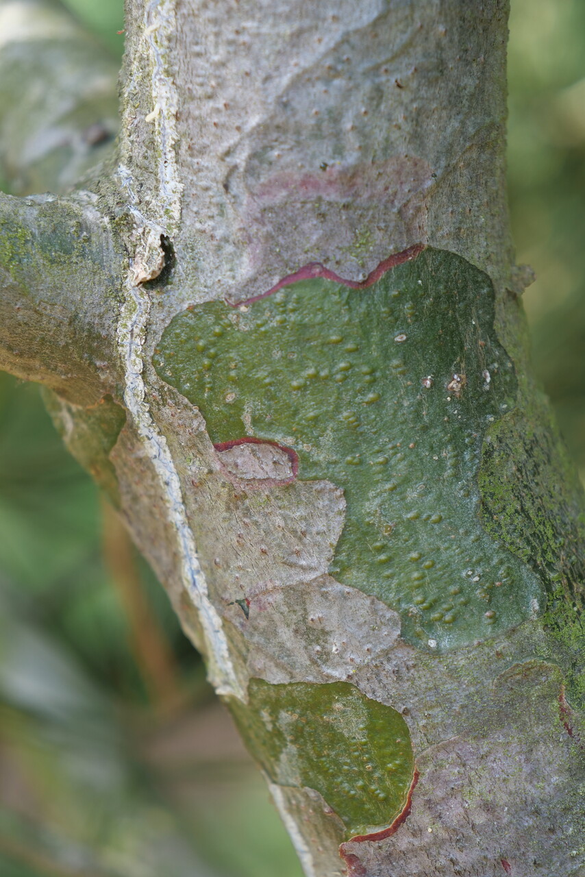 twigs grey-green, bark dark grey-green to brown-red and scaling