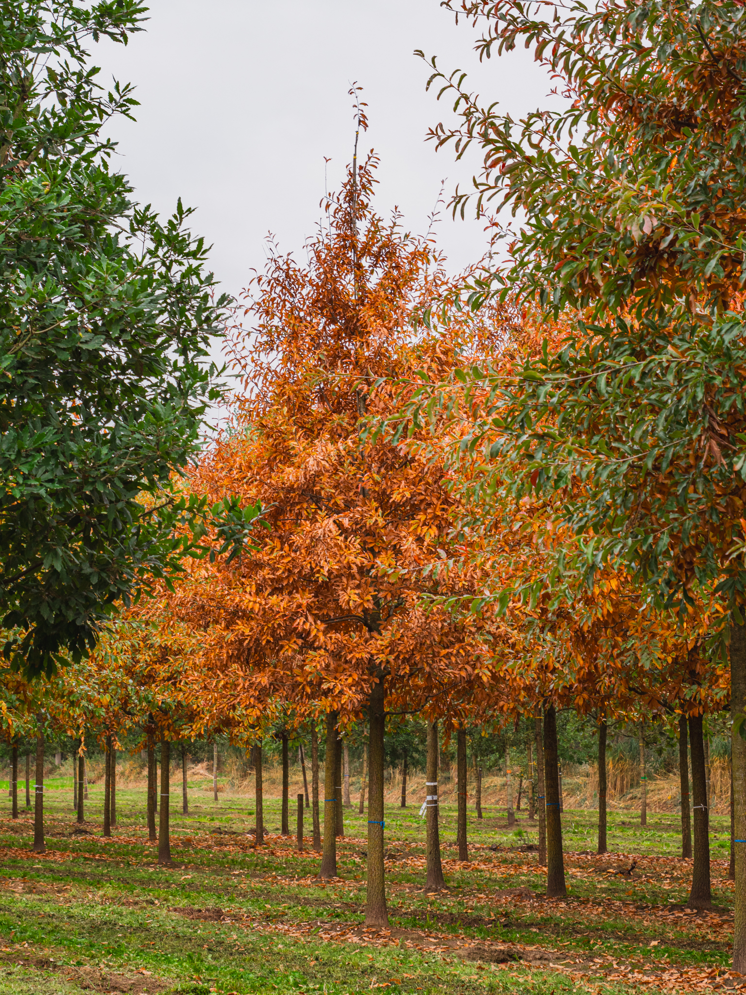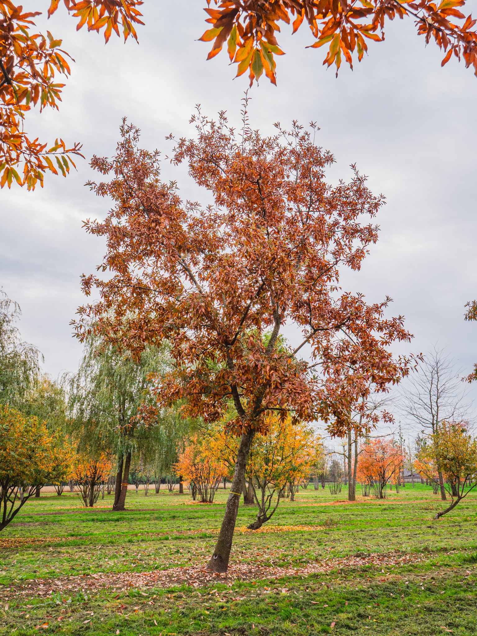 The leaves of Quercus imbricaria turn yellow, purple in autumn.