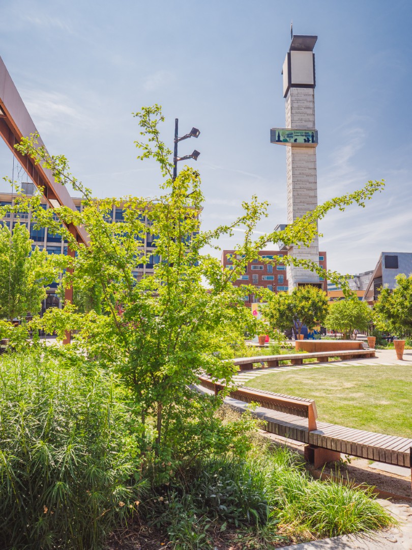 Selecția speciilor de arbori se bazează pe rezistența la climă și biodiversitate. Au fost furnizați, printre altele, Tilia cordata ‘Greenspire’, Robinia pseudoacacia ‘Semperflorens’ și Koelreuteria paniculata, precum și arbori cu mai multe tulpini precum Cornus kousa, ‘China Girl’, Malus toringo și Amelanchier lamarckii.