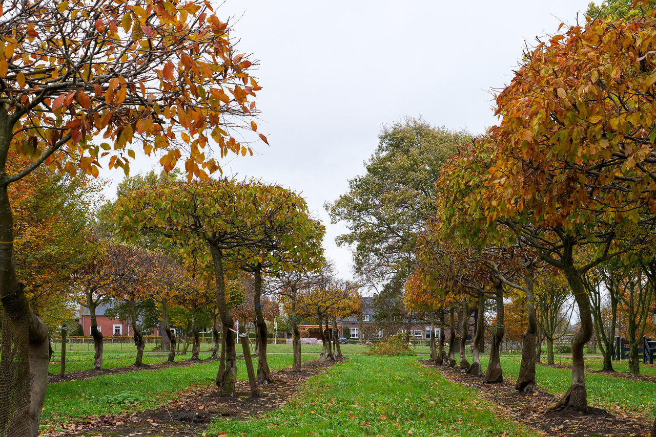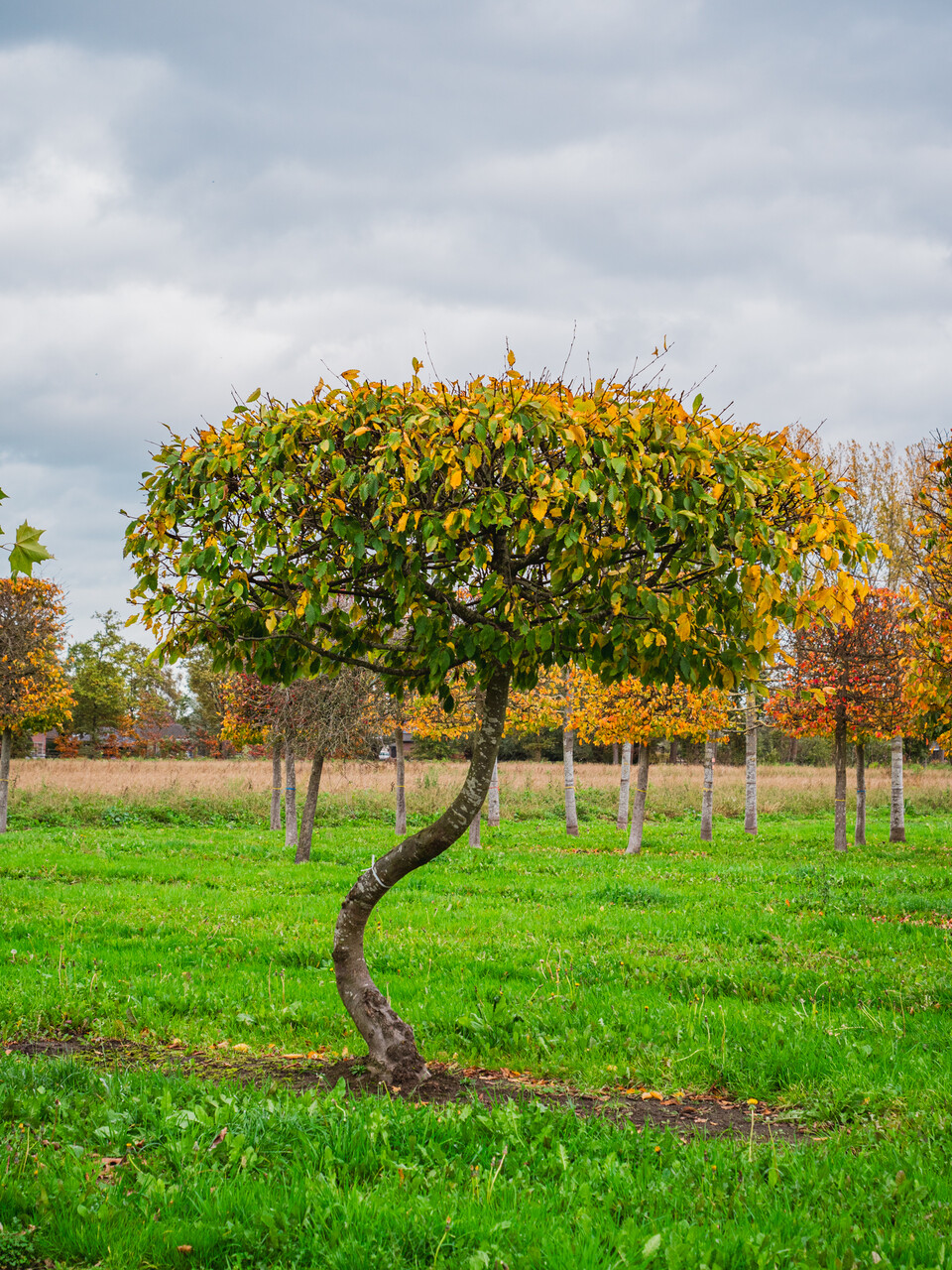 Parrotia persica (lemn de fier persan), care se colorează atât de frumos toamna. Copacii THE SWING sunt brevetați și sunt disponibili exclusiv la Pepinierele Van den Berk.