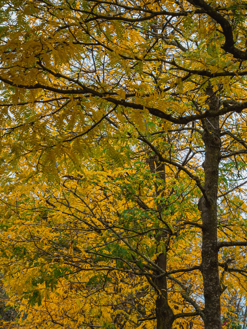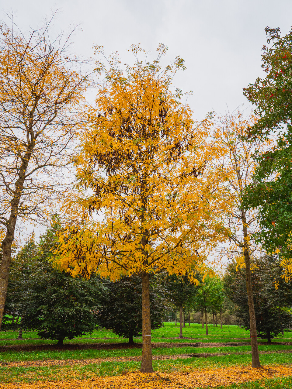 The leaves of Gleditsia triacanthos f. inermis turn yellow in autumn.