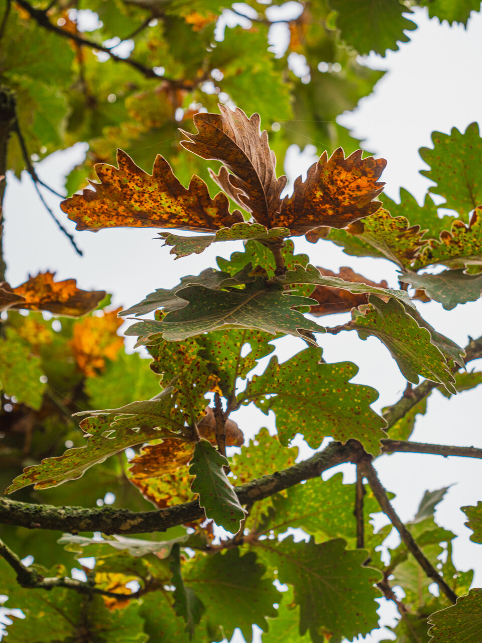The leaves of Quercus dentata 'Carl Ferris Miller' turn yellow in autumn.