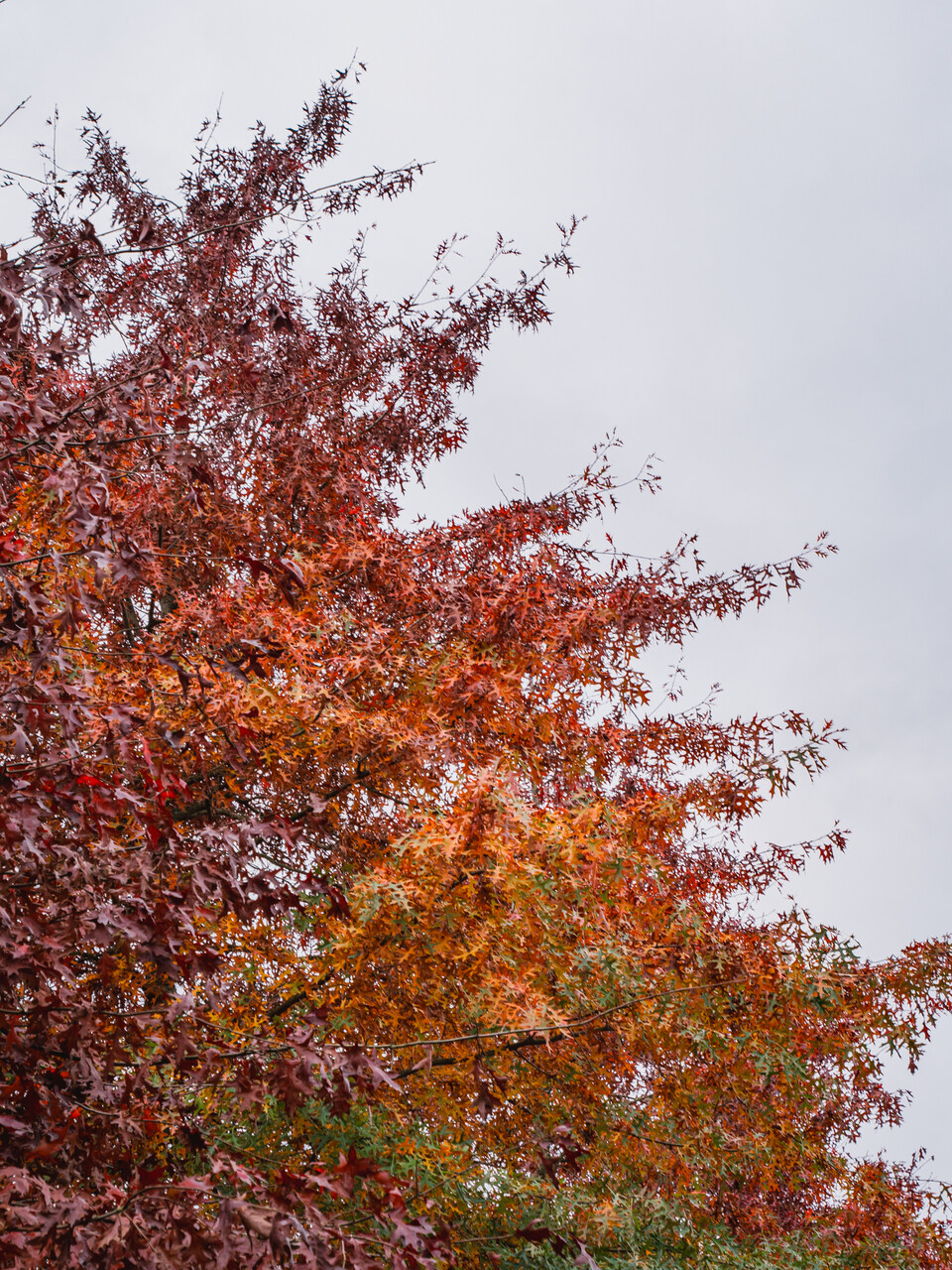 The leaves of Quercus palustris turn red in autumn.