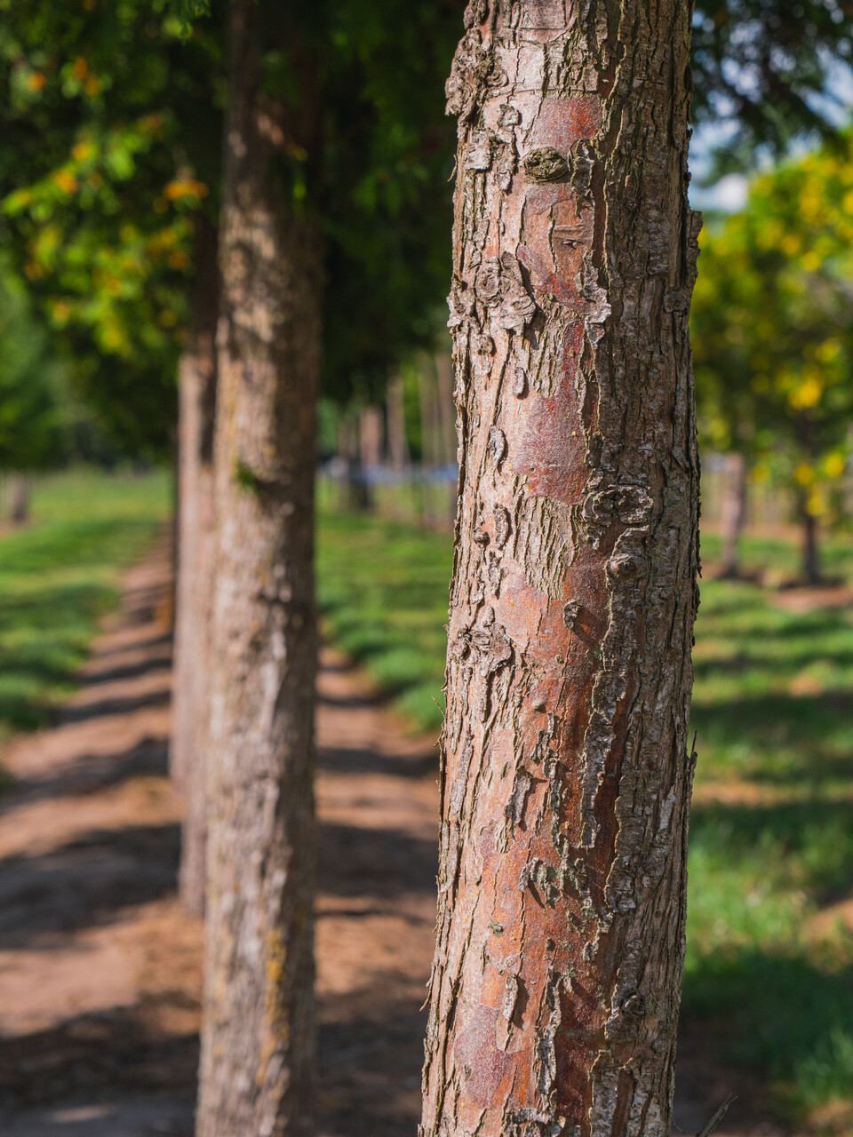 twigs green to orange-brown, bark reddish brown, scaling in narrow strips