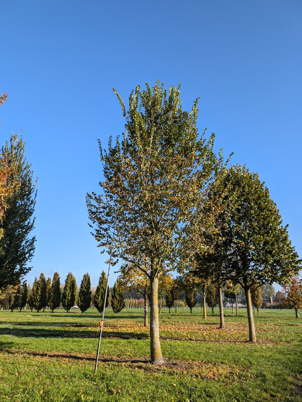 The leaves of Ulmus LUTECE ('Nanguen') turn yellow in autumn.