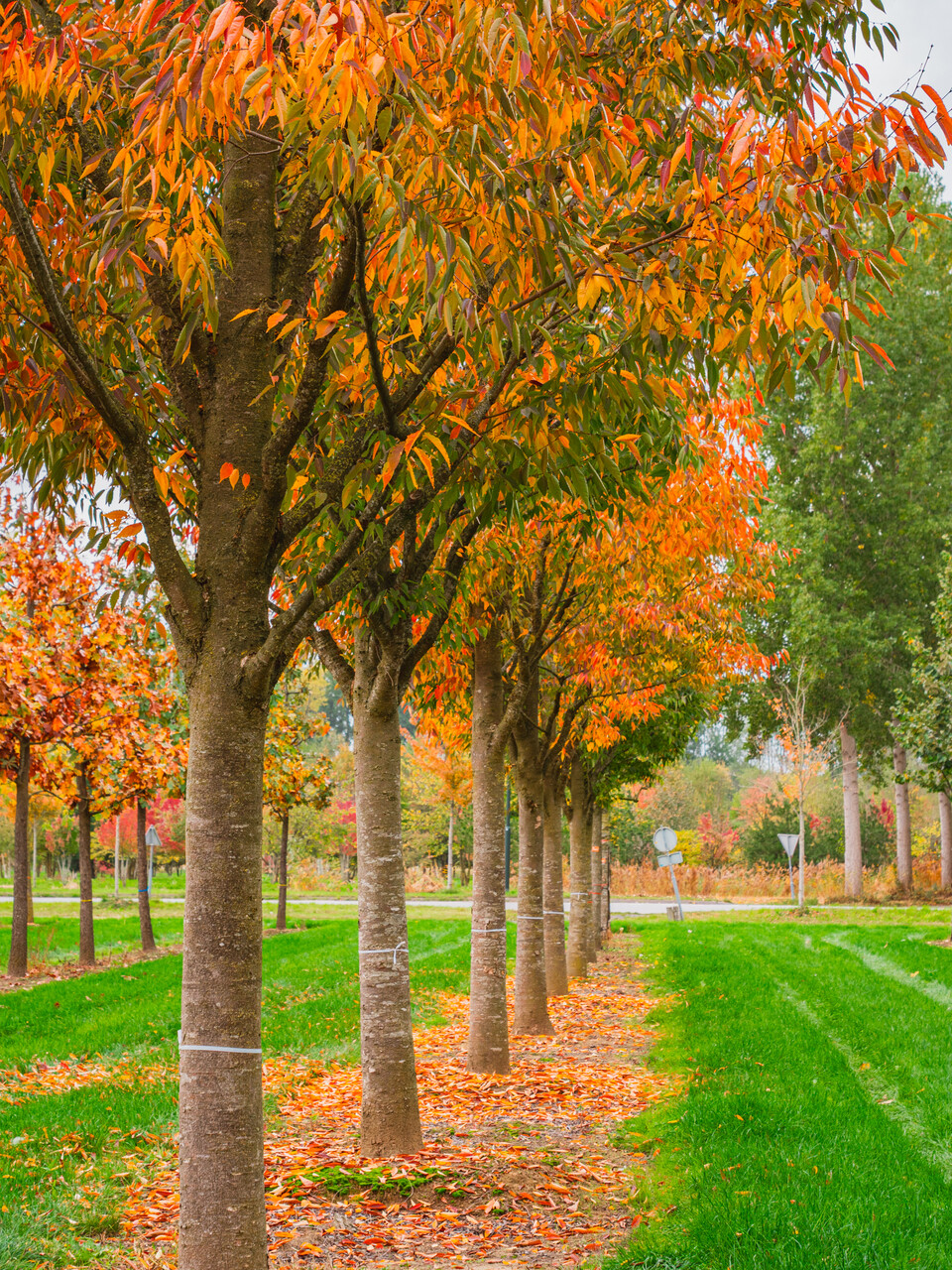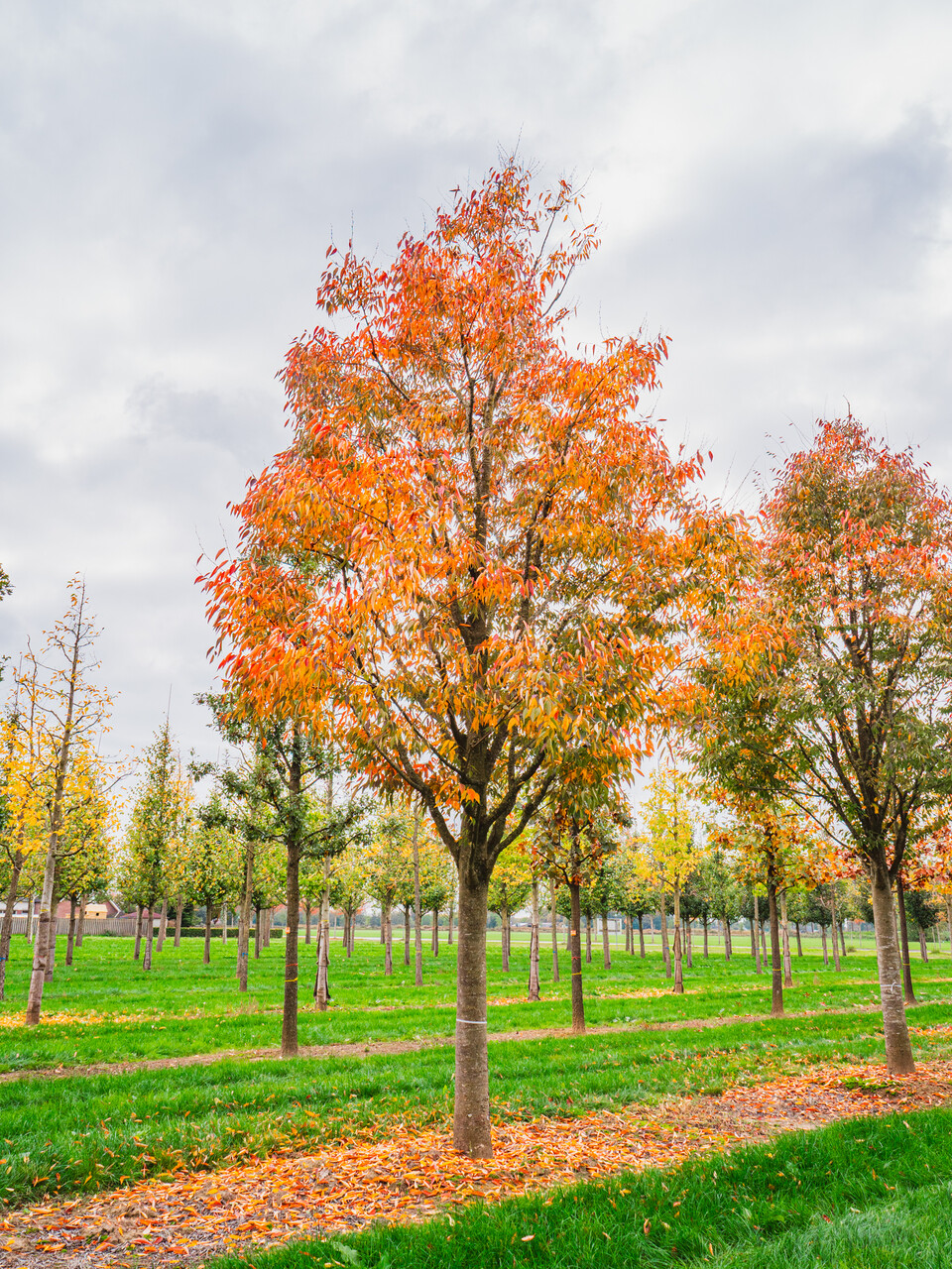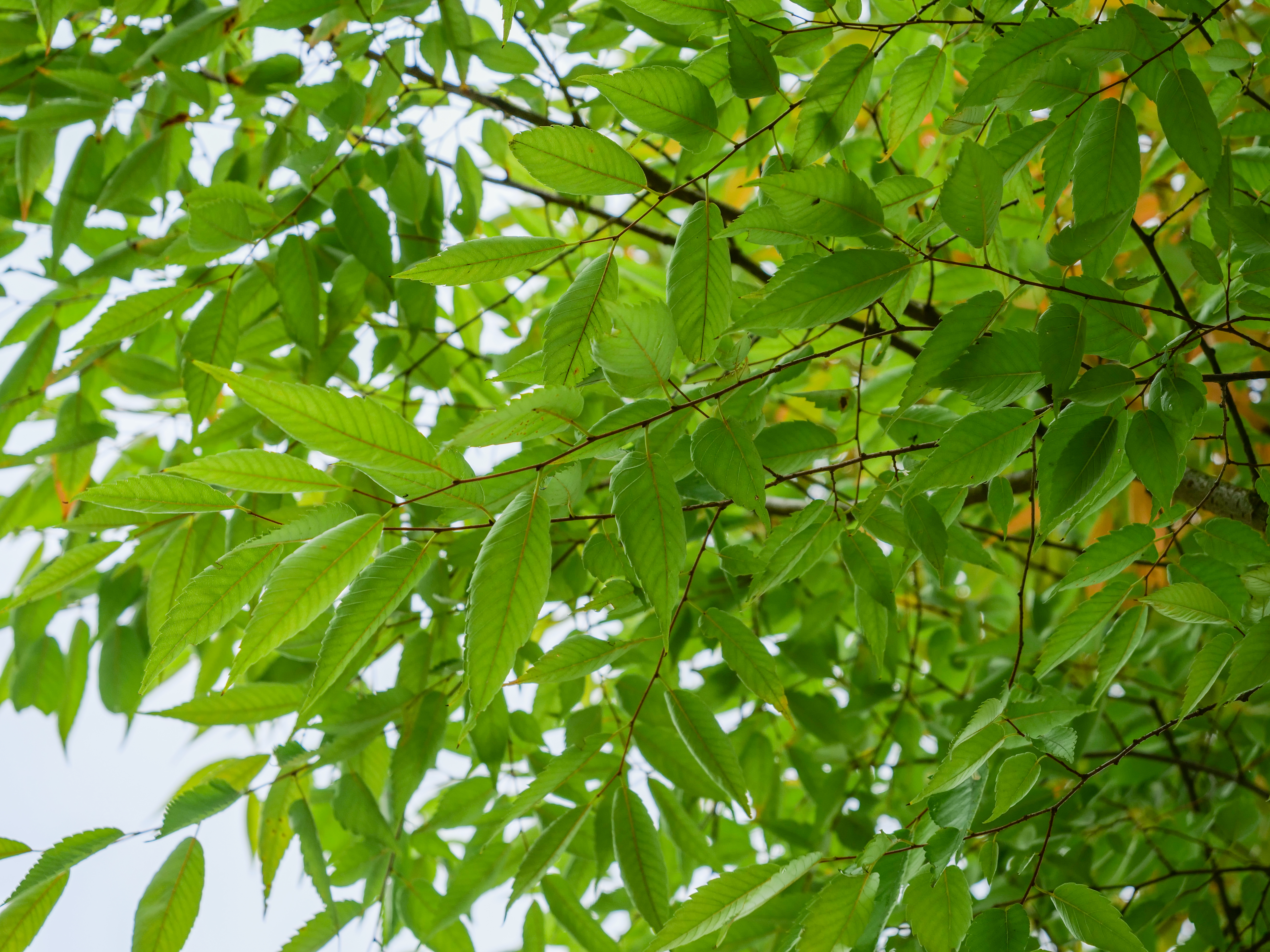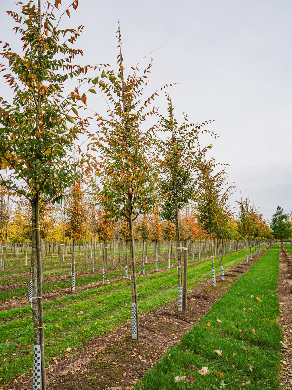 The leaves of Zelkova serrata GREEN VASE ('Flekova') turn yellow, orange, red in autumn.